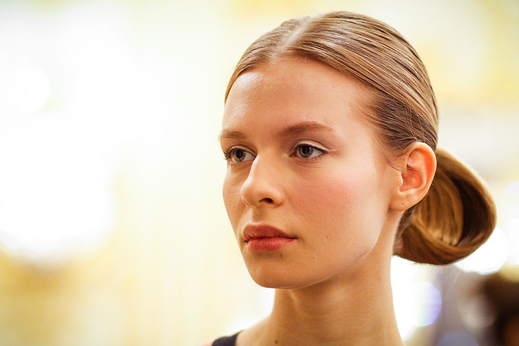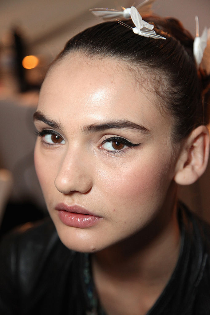 Στον οίκο Ines Di Santo είδαμε και την πολύ εντυπωσιακή μπρονζέ ροζ-χρυσή σκιά που είναι ένα από τα απόλυτα χρώματα για τα βλέφαρα και φέτος το καλοκαίρι. Το ιριδίζον αποτέλεσμα σε συνδυασμό με την τερακόττα στα ζυγωματικά – πάντα σε απαλούς τόνους και αποφεύγοντας τις υπερβολές- είναι μια επιλογή που σαγηνεύει.