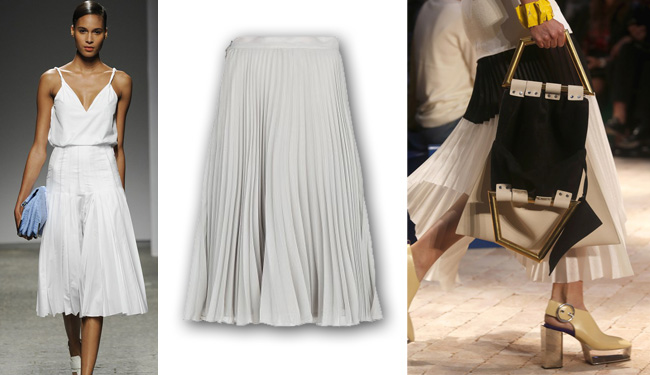 Οι πιέτες φέτος γίνονται το σύμβολο της θηλυκότητας. Αν θέλεις να καμουφλάρεις την περιφέρειά σου, τότε κάποια midi φούστα συνδυασμένη με ψηλοτάκουνες γόβες θα δημιουργήσει το εφέ μια πιο κομψής σιλουέτας. Εάν πάλι είσαι ψηλή και αδύνατη, τότε σου προτείνουμε να πεις ναι σε κάποια μίνι, πλισέ φούστα.