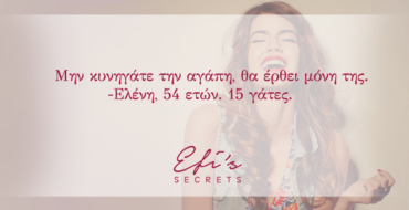 Quotes #307: Μην κυνηγάτε την αγάπη, θα έρθει μόνη της. -Ελένη, 54 ετών. 15 γάτες....