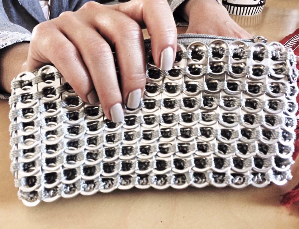 Η φίλη μας, κέρδισε ένα χειροποίητο, βραδινό τσαντάκι, κατασκευασμένο από ανακυκλωμένα αλουμινένια καπάκια αναψυκτικών.