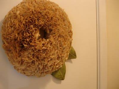 Ψημένα και λαχταριστά ποπ κόρν. Το σχήμα τους βοηθάει στο να φαίνονται σαν μικρές νιφάδες. Κολλάμε ένα- ένα τα ποπ κόρν πάνω στο στεφάνι και είναι έτοιμο!
