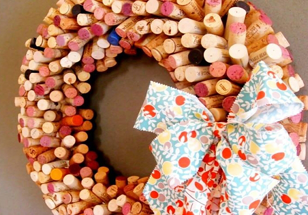Επιπλέον, αν είμαστε λάτρεις του κρασιού και τυγχάνει να έχουμε συλλέξει αρκετούς φελλούς, μπορούμε να τους χρησιμοποιήσουμε για το στεφάνι μας. Ακόμη, μπορούμε να τους δώσουμε χρώμα με ένα σπρέι.