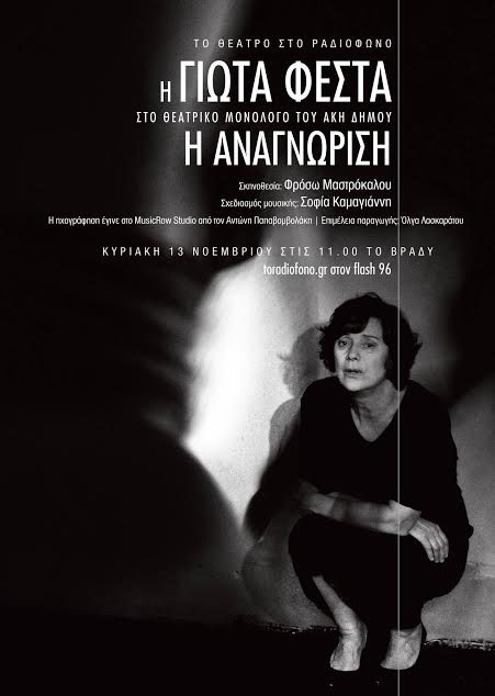 Την Κυριακή 13 Νοεμβρίου στις 11 το βράδυ, το “Θέατρο στο Ραδιόφωνο” παρουσιάζει την παράσταση «Η Αναγνώριση» του Άκη Δήμου με την Γιώτα Φέστα.