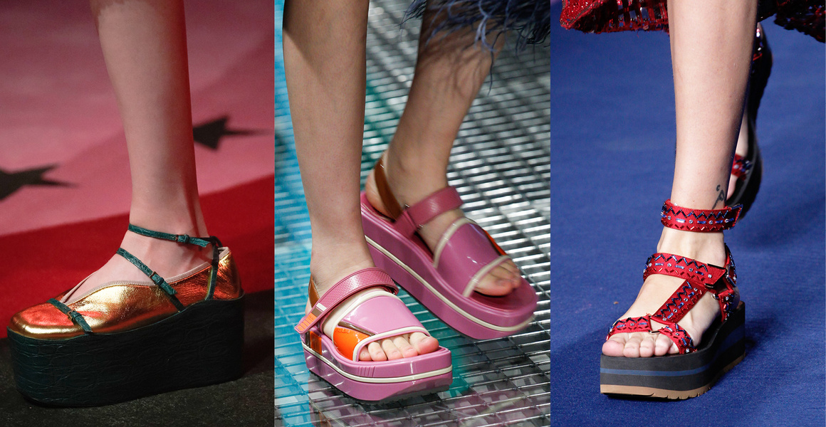 Η μόδα αυτή καλά κρατεί. Σε διάφορα σχέδια και υλικά κολακεύει το πόδι, προσδίδει ύψος και κάνει τη γάμπα μας να δείχνει sexy. Είτε φορέσετε σορτσάκι, είτε φόρεμα, είτε καμπάνα παντελόνι ενδείκνυται.