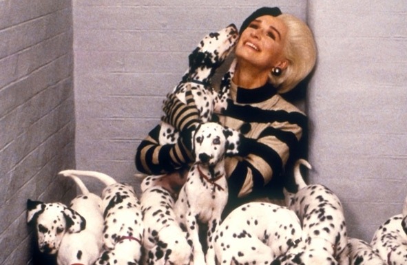 - Tα 101 σκυλιά της Δαλματίας(1996): Oύτε ένα, ούτε δύο, 101 αξιολάτρευτα κουτάβια με τις χαρακτηριστικές ασπρόμαυρες βούλες. Το αριστούργημα του Walt Disney μεταφέρθηκε με τεράστια επιτυχία στις κινηματογραφικές αίθουσες με αληθινούς πρωταγωνιστές. Όλοι γελάσαμε με τα καμώματα των γλυκών τετράποδων που εμπόδιζαν τα σχέδια της σατανικής Κρουέλα. Για να γυριστεί η ταινία χρησιμοποιήθηκαν συνολικά 230 κουτάβια και 20 ενήλικα! Λόγω της γρήγορης ανάπτυξής τους το κάθε κουτάβι δεν μπορούσε να παίξει παραπάνω από δυο εβδομάδες.