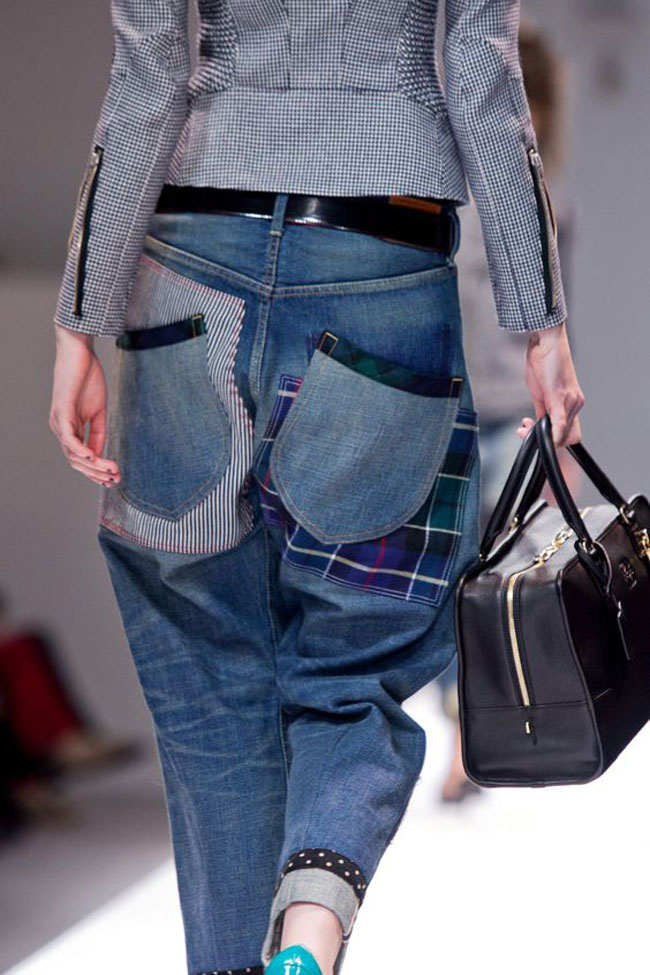 Τζιν: Το τζιν παντελόνι γίνεται λίγο πιο ιδιαίτερο, ξεφεύγοντας από το κλασικό boyfriend style με τα σκισίματα. Πλέον η μόδα θέλει ένα συνονθύλευμα από σκούρο και light blue τζιν, με το αποτέλεσμα να μοιάζει πιο χειροποίητο.