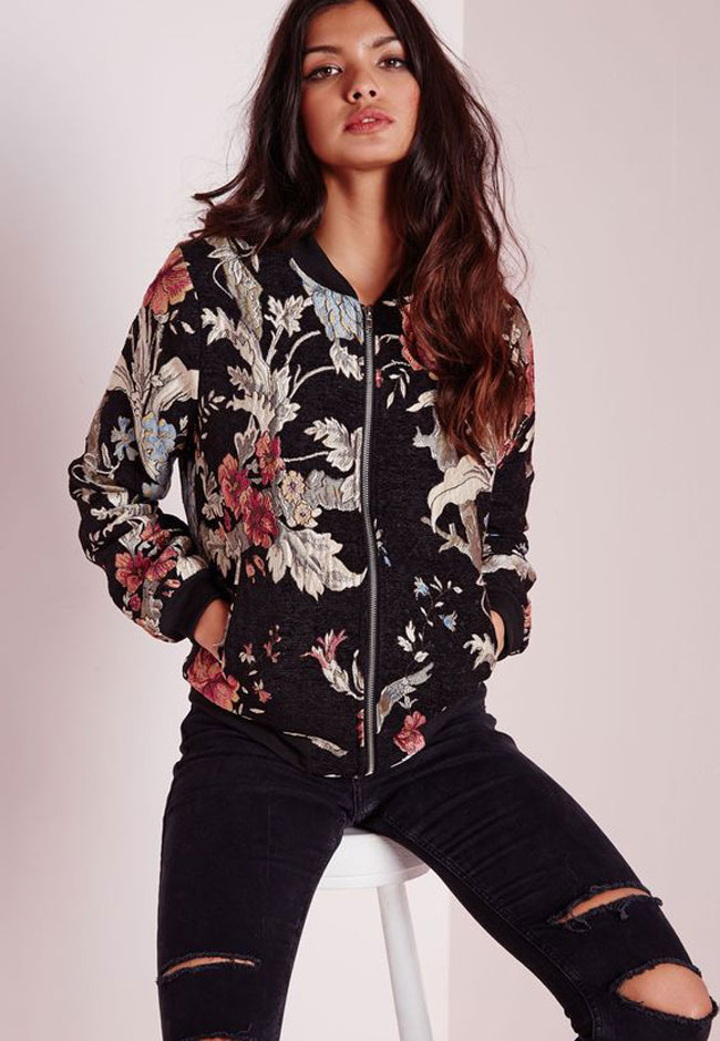 Floral: Η μετάβαση από το καλοκαίρι στο φθινόπωρο θέλουμε να είναι όσο το δυνατόν λιγότερο επώδυνη και γι΄αυτό το floral θα παραμείνει στα hot σχέδια και της επόμενης σεζόν. Μπουφάν με χρωματιστά λουλούδια (αλλά μαύρο φόντο) είναι η πρόταση του Gucci για το φθινόπωρο.