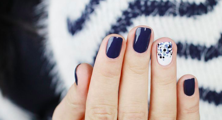 Τα μπλε σκούρα νύχια είναι μια ακόμα εξαιρετική επιλογή για το χειμερινό σας μανικιούρ! Μπορείτε να προσθέσετε και κάποιο εντυπωσιακό σχέδιο σε λευκό χρώμα, η λεπτομέρεια αυτή θα απογειώσει το τελικό αποτέλεσμα!